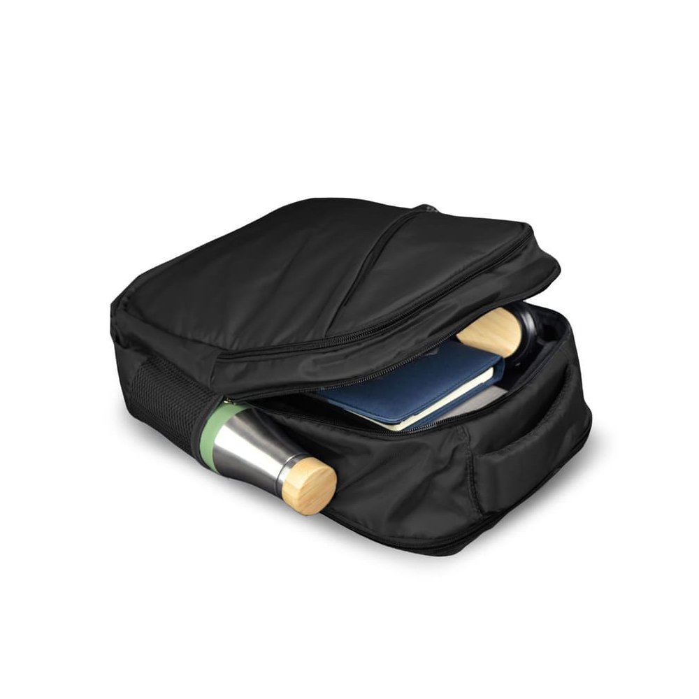 Resen is a practical and versatile backpack crafted from durable polyester, making it ideal for everyday use. Designed with functionality in mind, it features three spacious main compartments that provide ample room for documents, accessories, and daily essentials, along with a convenient front pocket for quick-access items. Two side pockets are included to securely hold water bottles or small accessories. The padded shoulder straps and cushioned back panel ensure enhanced comfort and support during extended wear. With its clean, simple design and reliable construction, Resen is a great choice for daily commuting, events, promotional campaigns, and office giveaways.